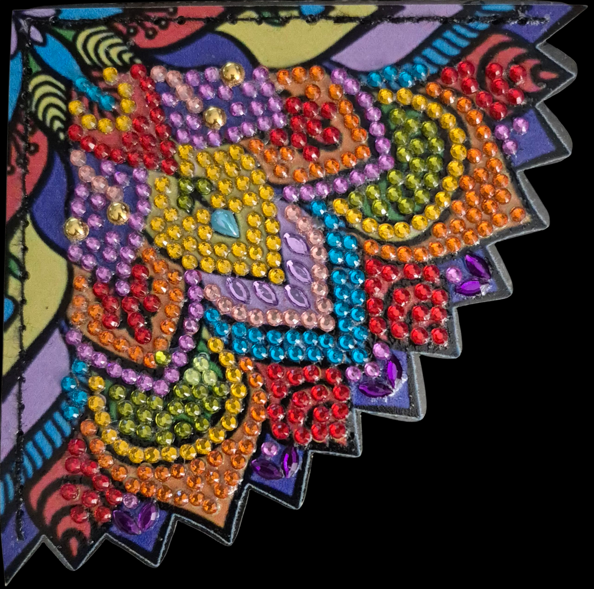 These handmade, diamond painted leather corner bookmarks are the perfect accessory for readers. With four unique colors to choose from, and crafted from high-quality PU leather, they provide softness, weather resistance, and long-lasting use. Each bookmark is adorned with a stunning lotus mandala triangle design that shimmers in the light, serving both practical and aesthetic purposes.
