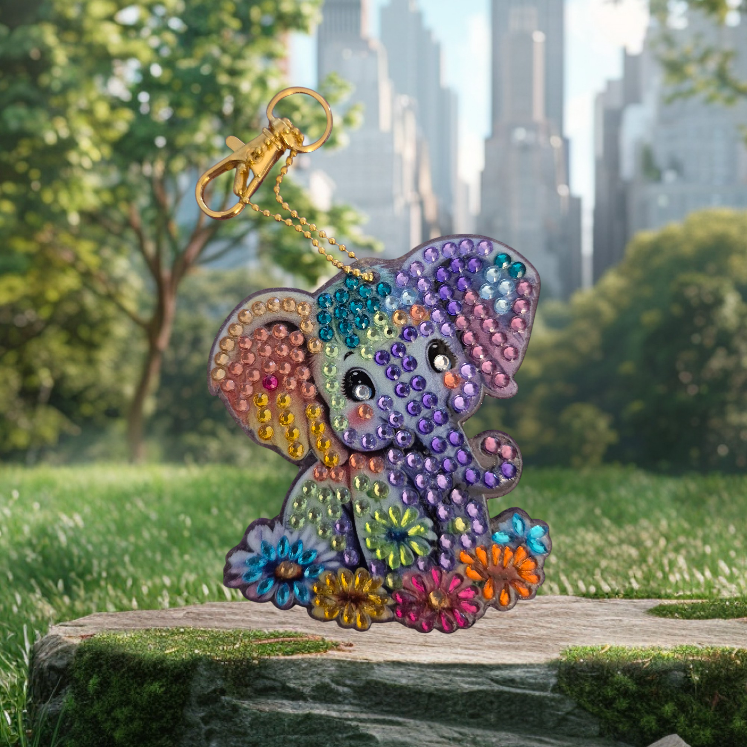 This elegant elephant keychain is the perfect unique gift for any occasion. Made with stunning diamond painting techniques, it adds a touch of luxury to your everyday items. Show off your love for elephants with this beautifully crafted keychain. Choose one for yourself, one for a friend, or choose the whole collection of 4 pieces for an amazing discount.