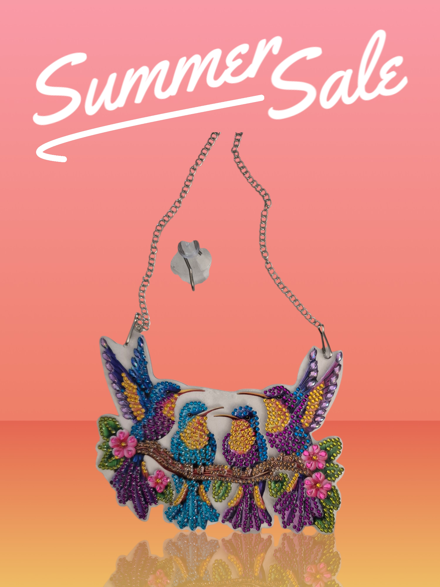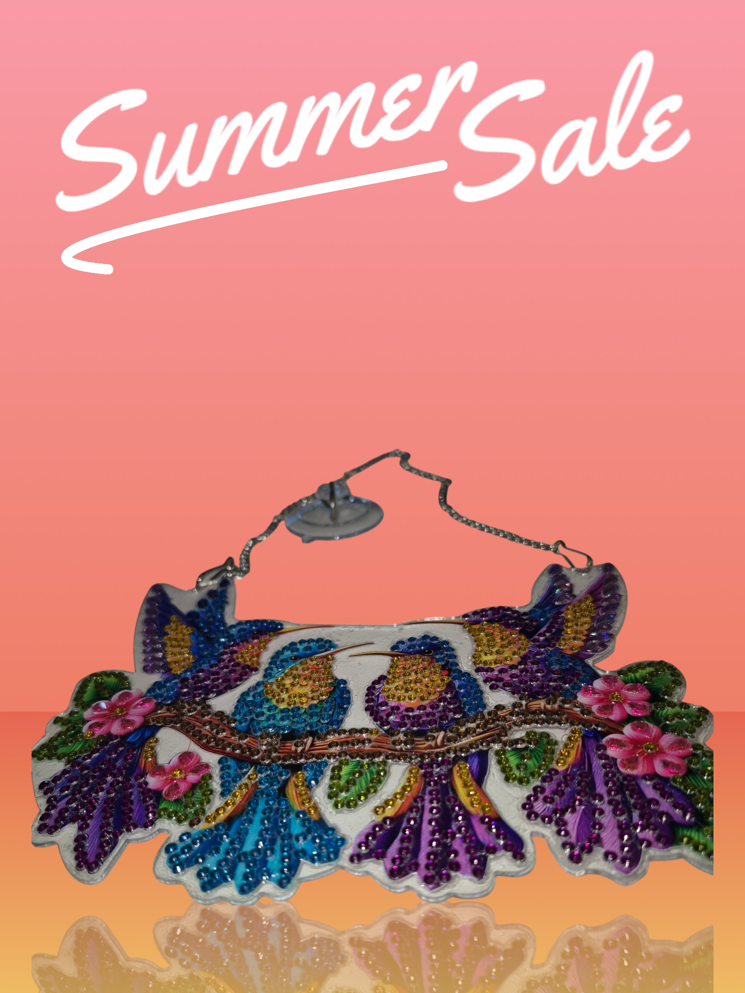 Let the sunshine dance! This gem-studded sun catcher features a trio of vibrant hummingbirds perched on a flowering branch, sending twinkling color across your room whenever the light hits.