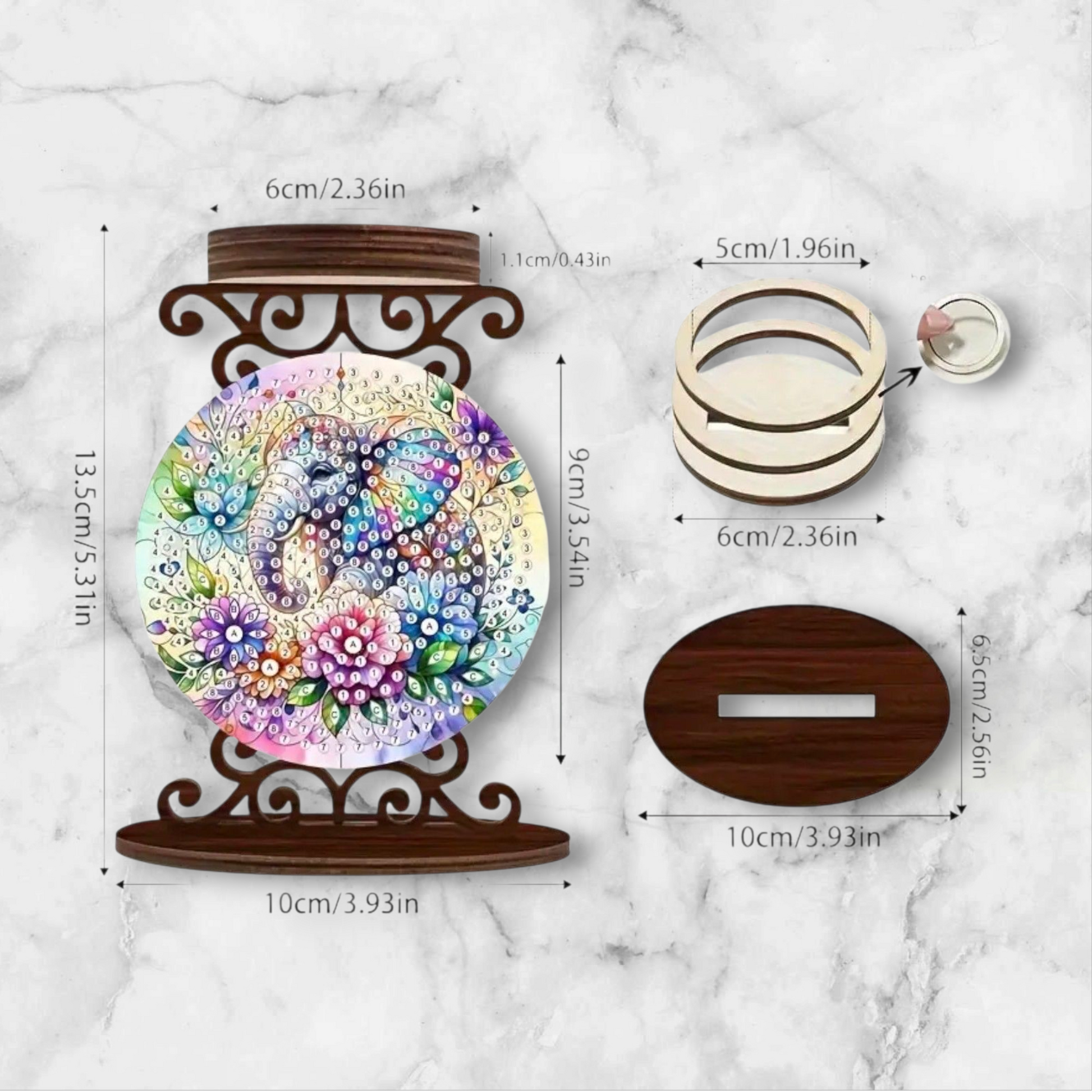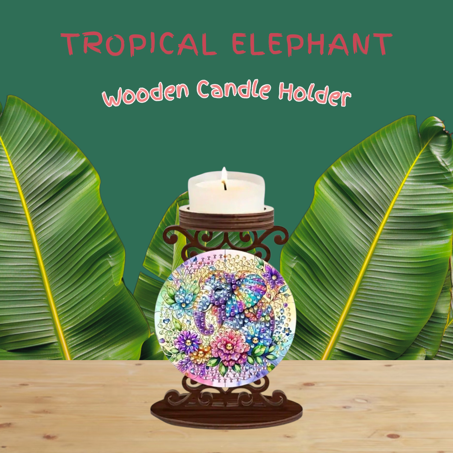 1 × wooden candle holder with diamond-painted tropical elephant artwork